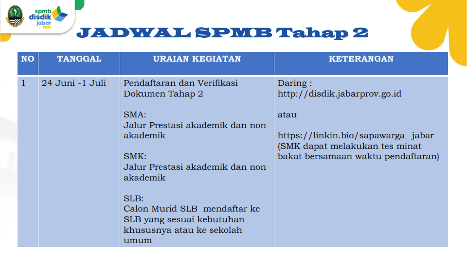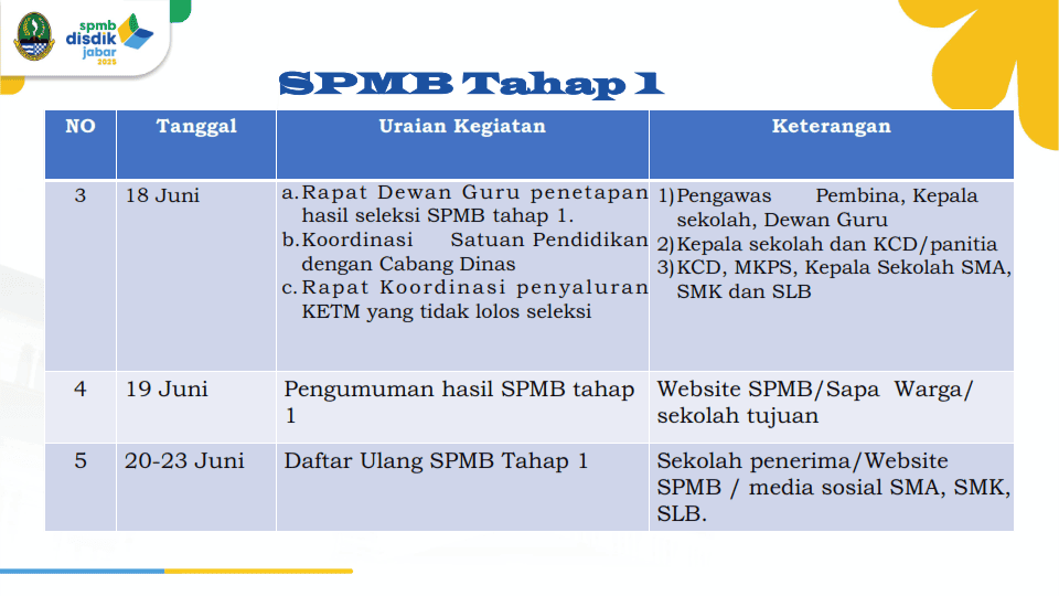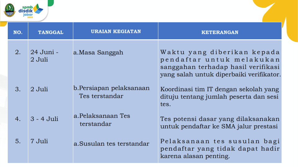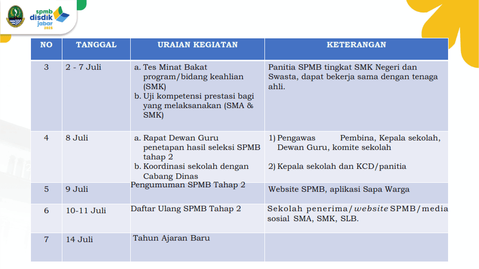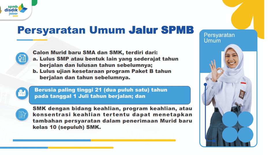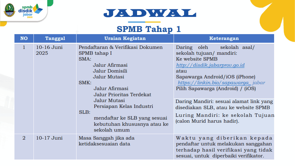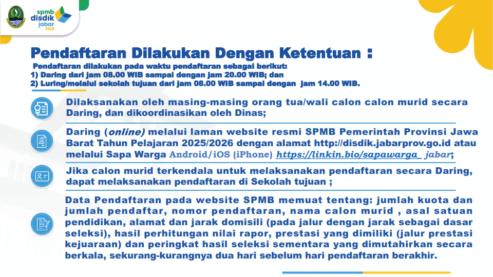 Berikut adalah detail informasi alur SPMB Jabar 2025.