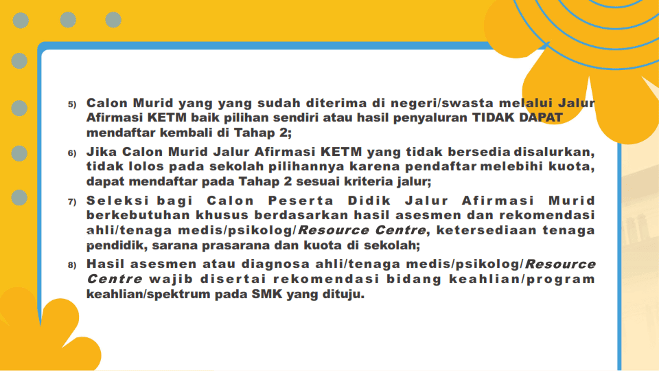 Pengisian data persyaratan khusus oleh calon murid yang akan