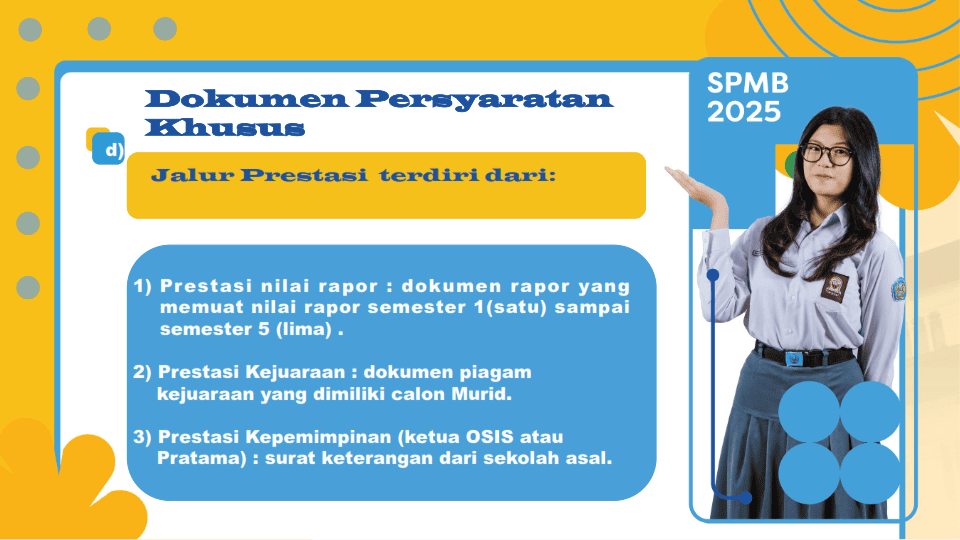 Calon murid terdaftar dalam satu kartu keluarga (yang diterbitkan paling singkat 1 (satu) tahun sebelum pendaftaran SPMB) dengan Orang Tua/Wali Calon murid dengan ketentuan: